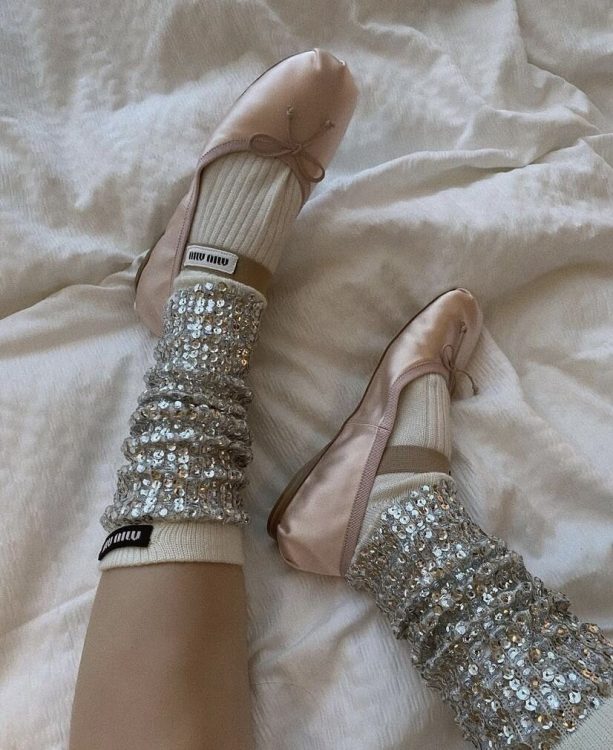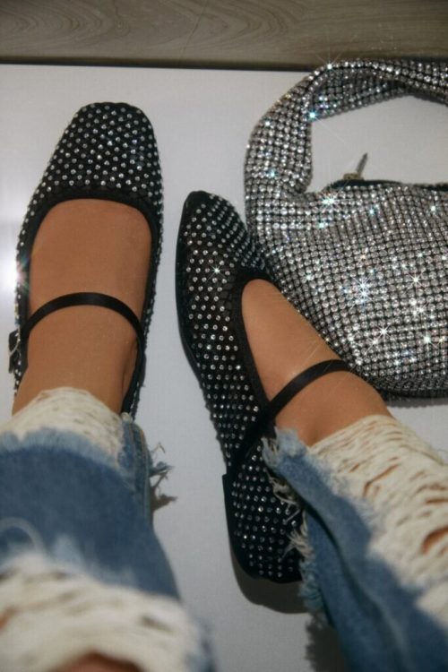 Ще одним трендовим варіантом сезону 2024 є туфлі-балетки, декоровані стразами. Епоха нульових знову популярна, тому стрази на одязі, взутті та в аксесуарах знову стають популярними.