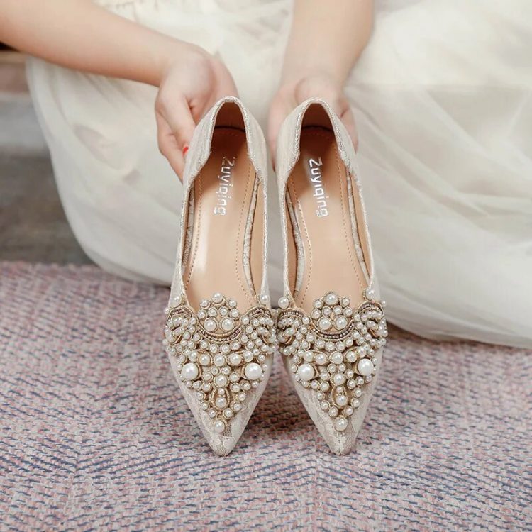 Якщо стрази – не ваш варіант, то можна обрати чудові туфлі-балетки, декоровані намистинами, бісером або штучними перлами. Такі моделі виглядають ефектно та багато.