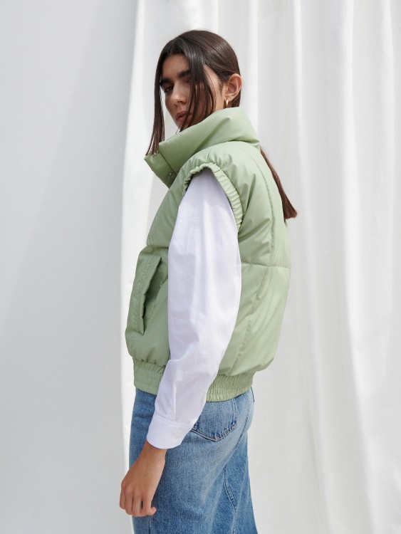 Також, окрім курток-пуховиків, можна вибрати пуховий жилет. Вони у нас зараз у моді, єдине, звичайно, це в жодному разі вже не хутряні жилети-гусениці та не тоненькі варіанти по фігурі. До речі, зустрічаються моделі зі знімними рукавами, тобто це в одному флаконі, і куртка-пуховик і жилет-пуховик – це вже, звичайно, більш практичний і вигідний варіант.