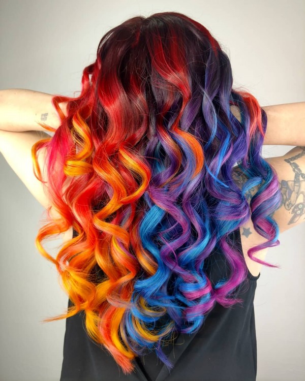 Багато хто впевнений, що різнокольорове волосся виглядає красиво тільки на світлих локонах. Насправді, техніка фарбування дозволяє зробити шевелюру райдужною, навіть якщо у вас від природи темний відтінок волосся. Вишуканим брюнеткам підходять найяскравіші та насичені відтінки, також дуже красиво виглядає фарбування у кольорі космосу. Потрібно бути готовою до того, що процедура займе дуже тривалий час, але результат точно порадує вас.