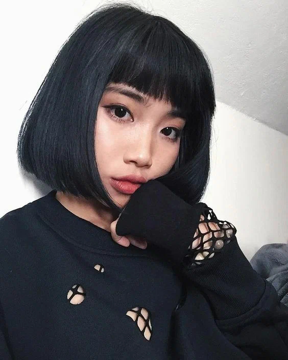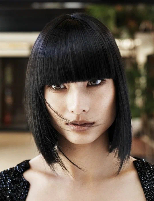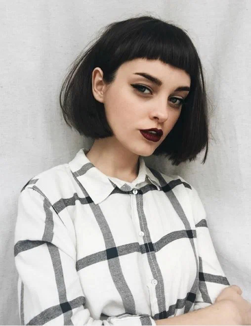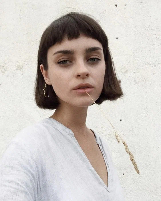 Восени 2022 року у тренді будуть ультрамодні моделі чубчиків. Помилуйтеся на це яскраве поєднання: каре на ніжці + прямий чубчик. Родзинка стрижки полягає в чубчику з рівним зрізом, ніякого градуювання та філірування бути не повинно.