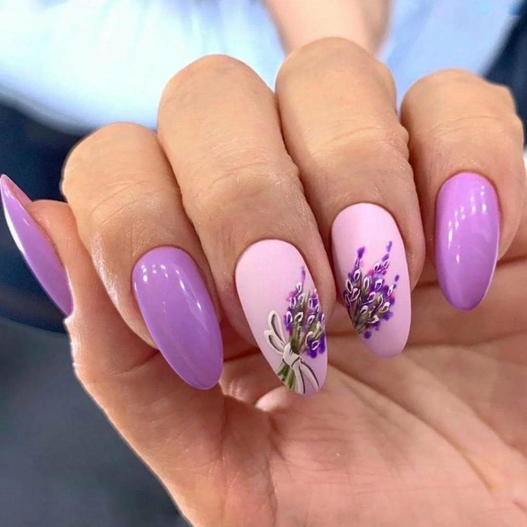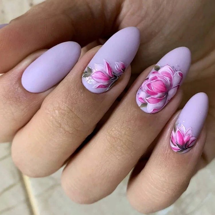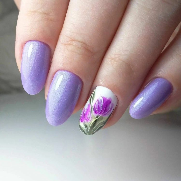Це ще одні квіти, які ідеально підходять для створення манікюру в ніжних бузкових тонах.