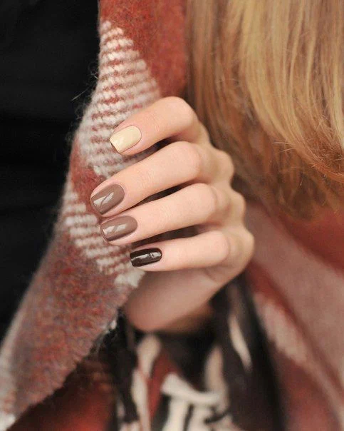 Як уже говорилося вище, коричневий манікюр – універсальний і підходить будь-якій молодій жінці. Завдяки різноманітності відтінків, які можна обрати до свого кольору шкіри. Наприклад, колір – кава з молоком, ідеально підходить як для буденного манікюру так і для робочих буднів. Він нейтральний, добре поєднується з різними кольорами і малюнками.