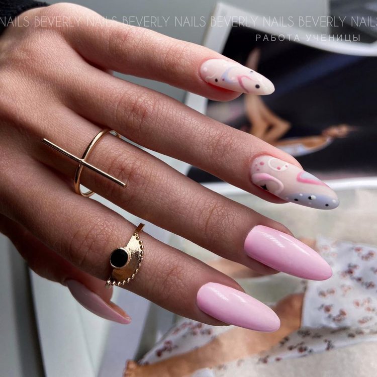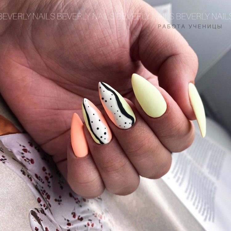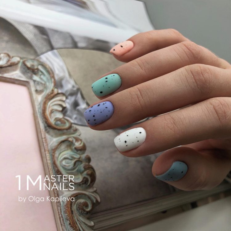 Літній тренд на хаотичні цятки плавно перейшов до осінніх модних тенденцій. Модницям припав до вподоби цей малюнок, тому вони вирішили не відмовлятися від нього цієї осені. Головне – використовувати приглушені, пастельні і теплі відтінки лаку.