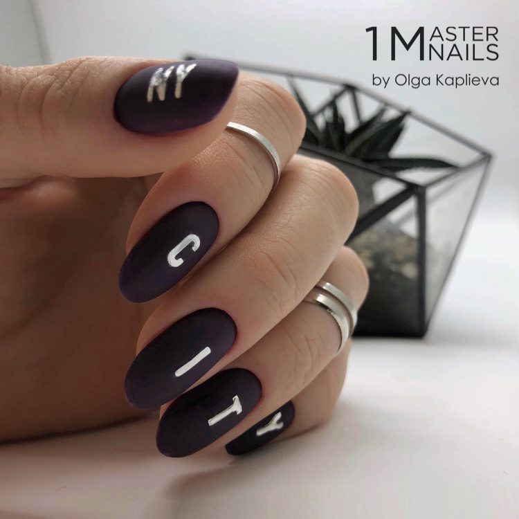 Цікавий манікюр із літерами створить унікальний образ модницям. Можна написати хоч весь алфавіт на своїх нігтях або вибрати певну фразу та розмістити її на кількох пальчиках.