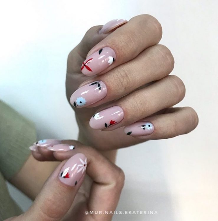 Але восени нейл-арт із квітами має бути особливим. Тут вступають у хід благородніші відтінки та пізніші квіти або абстракція. Ви не побачите в цього сезоні тюльпани або проліски, але інші квіткові візерунки осіннього періоду будуть цілком доречними, головне, щоб вони були розміщені на насиченому відтінку покриття або нюдовій основі. Так ваш манікюр отримає особливий осінній настрій.