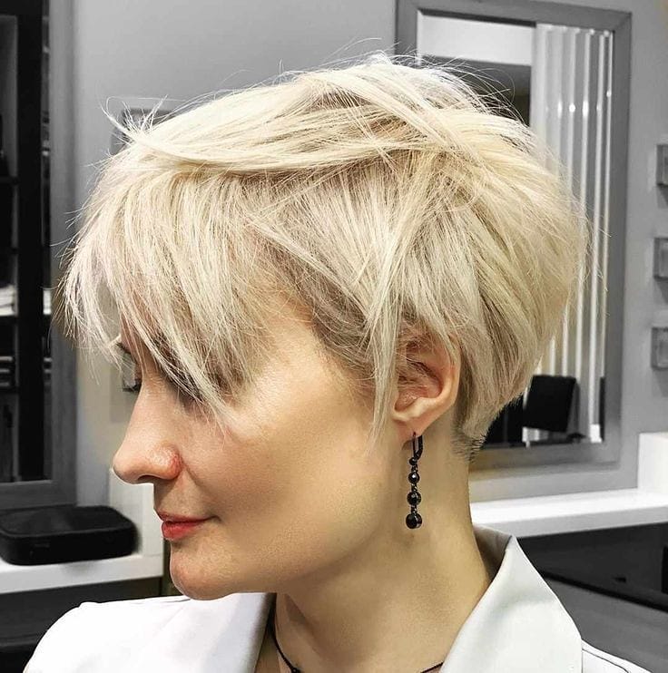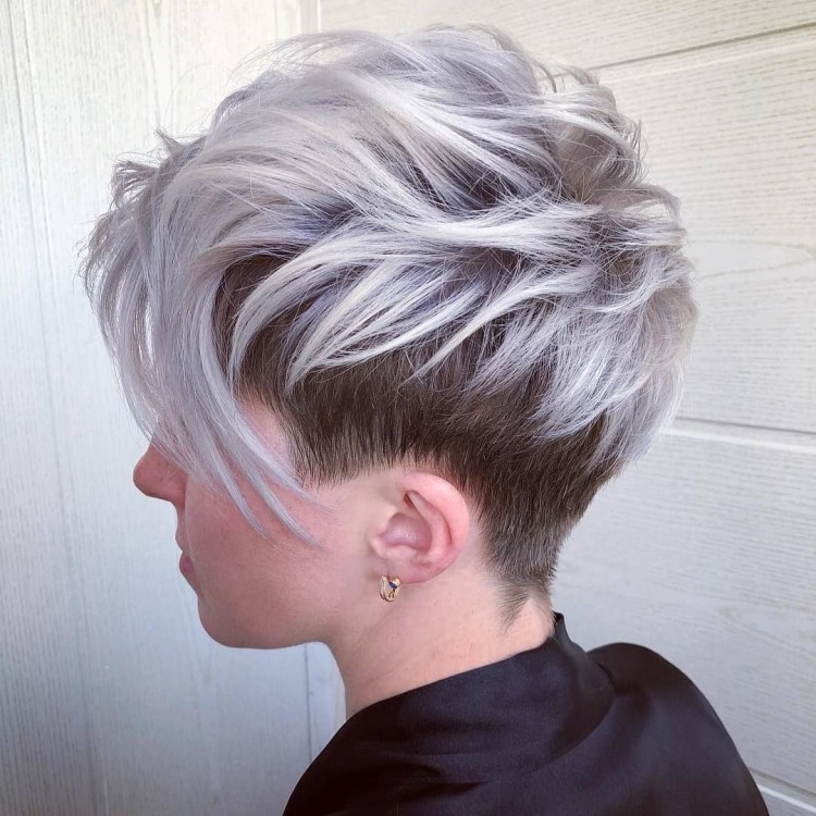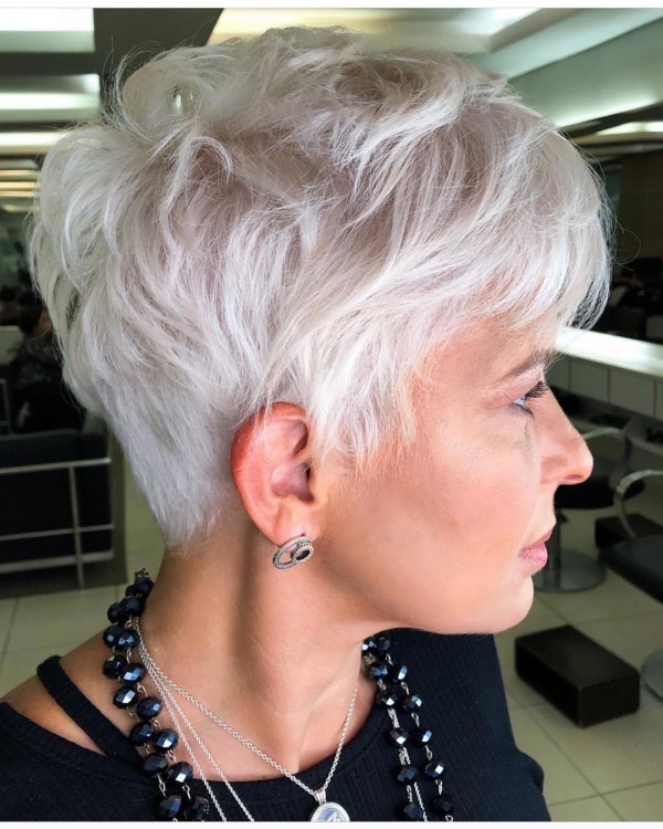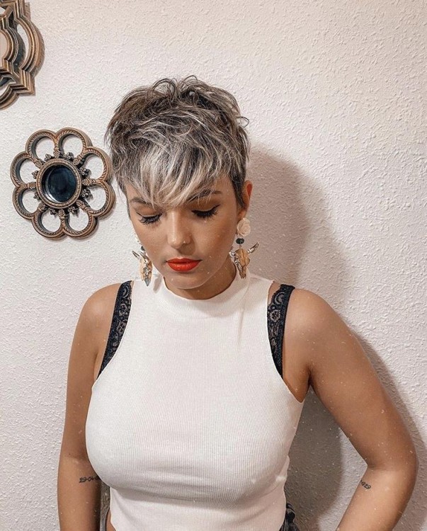 Піксі виглядає чудово на будь-якому відтінку волосся. Якщо ви втомилися зафарбовувати сивину, тоді ця зачіска дозволить взагалі відмовитися від будь-якого виду фарбування. Адже наймодніша стрижка 2022 року – це розкішна платинова піксі в природному об’ємі.