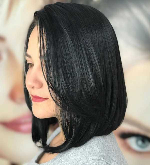 Волосся довжиною до плечей у темній гамі з косим проділом – вибір сміливих та стильних модниць. Темне волосся особливо благородно виглядає з повітряними зачісками і укладаннями, які вимагають прикореневого об’єму.