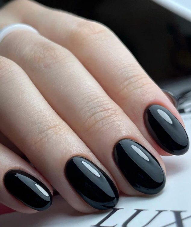 На довгих нігтях чорний виглядає надто готично, а на коротких – ідеально. Для багатьох жінок чорний – лідер осені, який виглядає стримано і лаконічно. Єдиний мінус у тому, що цей відтінок швидко підкреслює відростання покриття.