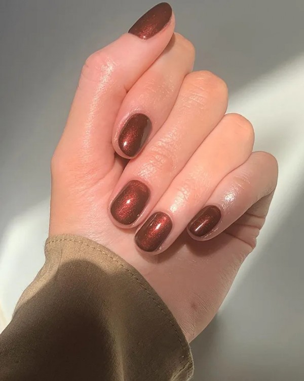 Блискучий манікюр із металевим ефектом теж буде у тренді! Лак з дрібними світловідбиваючими частинками може бути будь-якого кольору: сірий, темно-синій або, наприклад, цегляний. Словом, підбирайте відтінок лаку під настрій хоч щотижня. Манікюр у металевих тонах особливо актуальний у спекотний сезон корпоративів: такий нейл-дизайн завжди виглядає яскраво та святково.