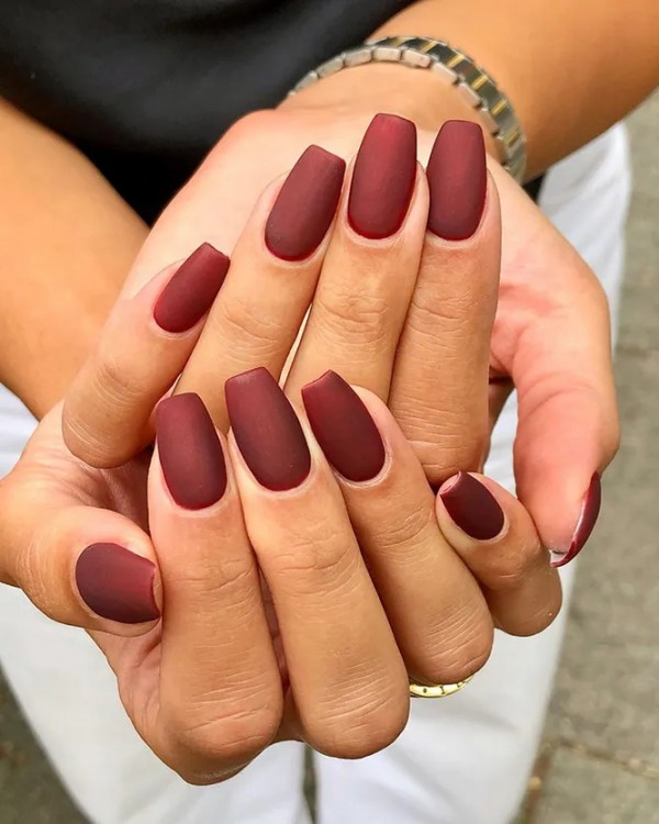 Технічно матовий це не колір, а фактура, але ми не могли не включити цей варіант манікюру в нашу сьогоднішню добірку. Якщо з відтінком манікюру ви вже визначилися, то замість глянсового спробуйте зробити його матовим – і точно будете в тренді. Особливо виграшно у матовому варіанті виглядають бордовий, сірий чи оливковий.