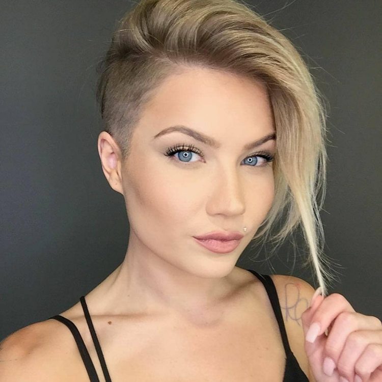 Зачіска з поголеними скронями або потилицею вже не рідкість. Найчастіше їх використовують на коротких пасмах. Стильний, молодіжний варіант, який іноді використовується і старшими жінками. Хороший спосіб наголосити на своїй індивідуальності.