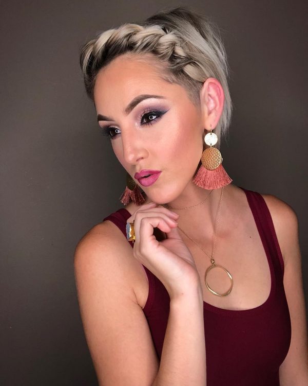 Дуже мило і романтично на короткому волоссі виглядають коси. Вона може бути одна або кілька, спереду або з обох боків. При цьому коси чудово виглядають як на прямих, так і хвилястих пасмах.