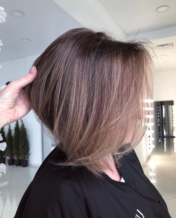 Багато жінок роблять акцент на потилиці. Щоб отримати такий розкішний об’єм, достатньо зробити подовжений боб або каре на ніжці. Вже потім за допомогою брашингу закінчити стильне укладання.