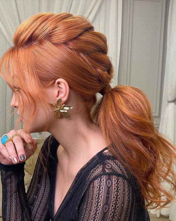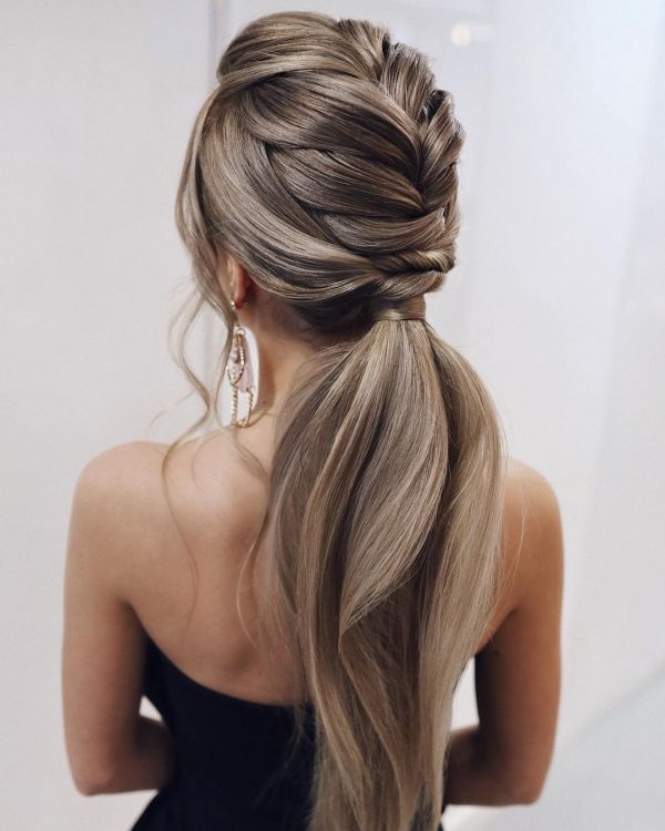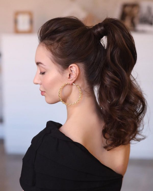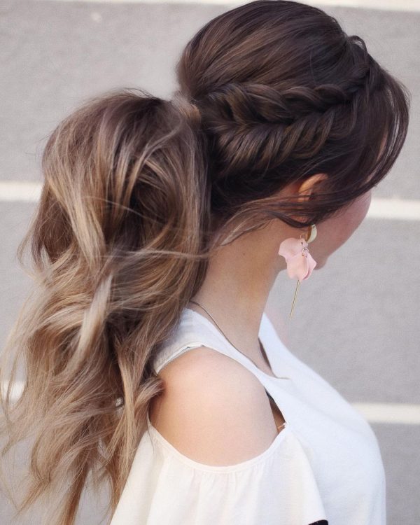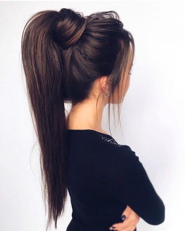 Високий хвіст – це класика серед довгих зачісок. Ідеальна укладка дозволяє показати всю красу жіночого обличчя. У 2023 році будуть користуватися популярністю хвости з прямими кучерями, з хвилястими пасмами, з плетінням.