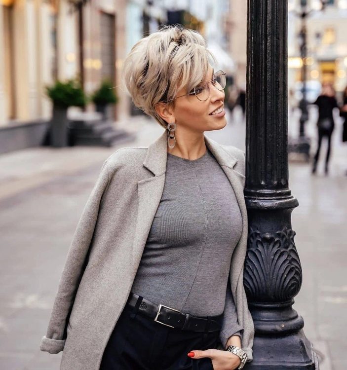 Ви тільки помилуйтеся, якого об’єму від самого коріння можна досягти на короткій стрижці піксі. Щоб волосся мало запаморочливий об’єм, тут варто скористатися плойкою або праскою великого діаметру, яка допоможе створити об’ємні текстуровані кучерики.
