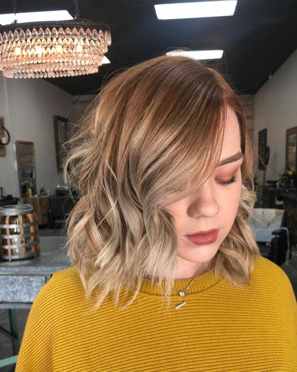 Перед вами наочний приклад жіночної стрижки боб з подовженими передніми пасмами, яка виграшно виглядає з текстурованими кучерями. Завдяки даному укладанню ваше волосся буде виглядати густим і доглянутим. Зверніть увагу, як гармонійно текстуровані кучері виглядають зі складними техніками фарбування, такими, як балаяж, шатуш, омбре, ейртач, сомбре, а також градієнт.