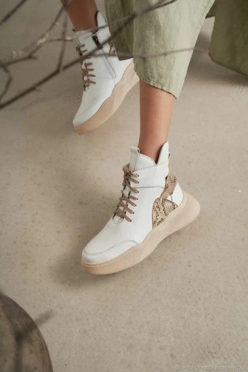 Анімалістичні вставки на білій шкірі – ефектні черевики для зимових аутфітів.