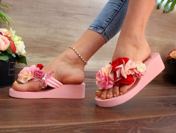 Найбільше дівчатам припадуть до смаку варіанти з квітами. За рахунок подібного декору взуття буде виглядати жіночно та яскраво. У таких шльопанцях можна вирушити на прогулянку містом, в кінотеатр або парк. Вони чудово впишуться у будь-який повсякденний образ.