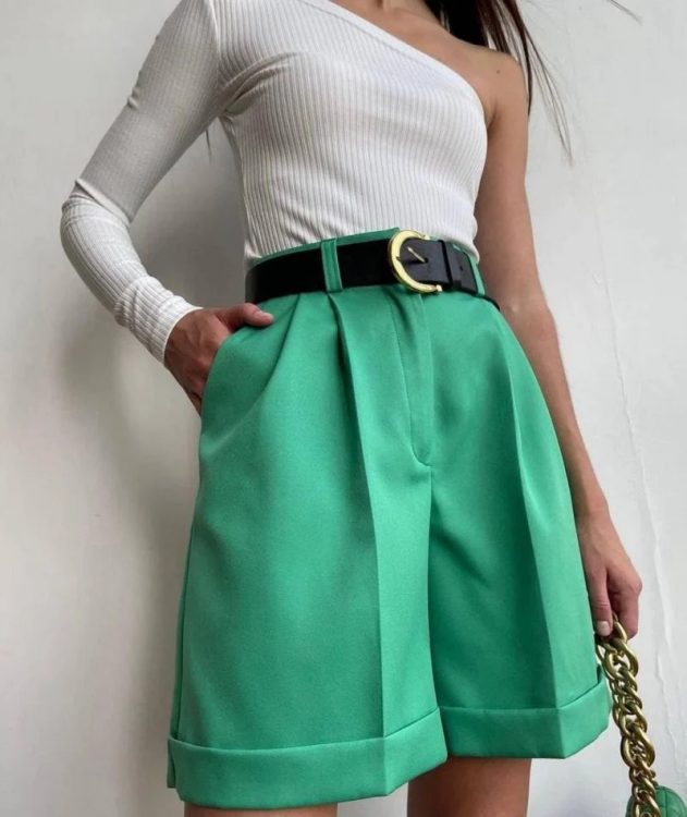 Шорти-бермуди, що зовнішнім виглядом нагадують відрізані костюмні штани, актуальні кілька сезонів поспіль і 2022 рік не стане винятком. Саме ця модель робить модний образ лаконічним та елегантним, саме бермуди дозволяють створити стильний літній образ для офісу.