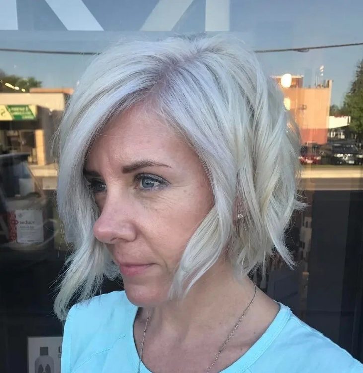 Стрижка, завдяки якій ви знову закохаєтеся у своє відображення у дзеркалі – це асиметричний боб з косим рваним чубчиком. Подовжені передні пасма волосся візуально допоможуть приховати друге підборіддя, а також додати чіткості вилицям.