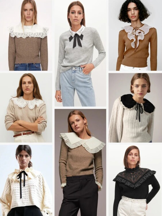 Мабуть, найбільш неоднозначний тренд. Комусь ажурний комірець на в’язаному пуловері видасться недоречним, у когось викличе асоціації зі шкільними роками, а хтось з радістю «оновить» свій улюблений джемпер бабусиним рукоділлям. Слідувати чи ні цій модній тенденції – лише ваш вибір.