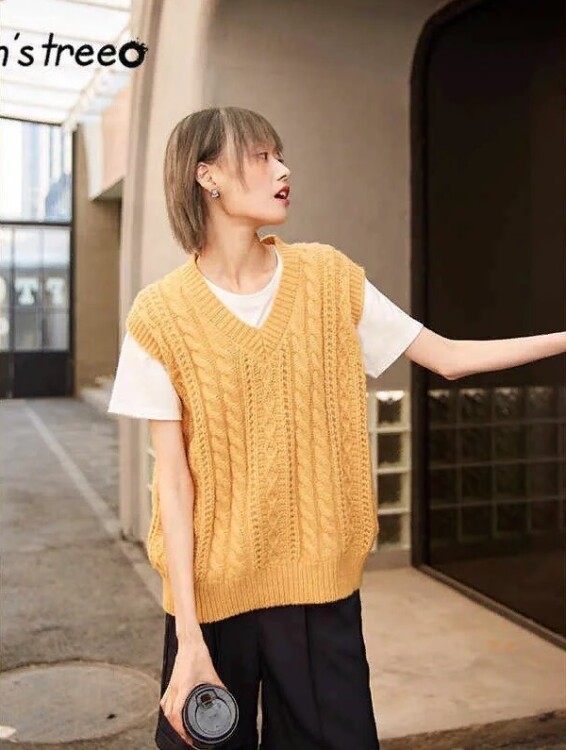 Такі жилети зараз є наймоднішими. Це, як правило, моделі крупної в’язки і досить об’ємні, начебто дійсно зняті з плеча вашого дідуся. Часто на таких жилетах вив’язані арани, коси, або ж вони доповнені принтом у вигляді ромбів і “гусячих лапок”.