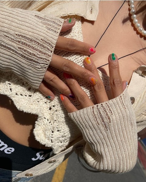З таким дизайном можна впоратися самостійно. Для цього слід залишити на нігтиках по одній-дві краплі яскравого лаку. Вони створюють унікальний дизайн. Виглядає помітно та чудово підходить для літнього сезону. До речі, кореянки шаленіють від такого незвичайного манікюру!