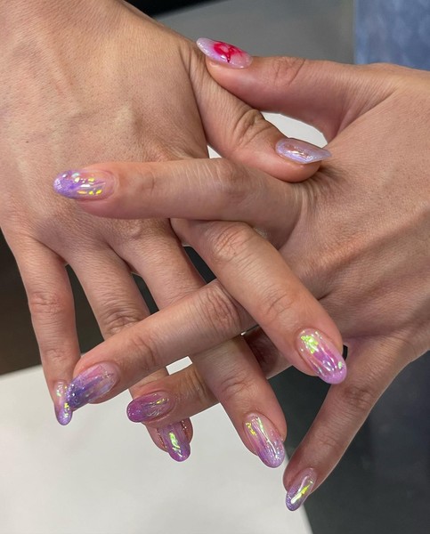 Для любителів блискіток теж є чудова можливість поекспериментувати з абстрактним дизайном. Відблиски, що переливаються, від розводів і глітеру будуть нереально красиво виглядати на сонці. Такий дизайн ви зможете повторити з фольгою для манікюру.