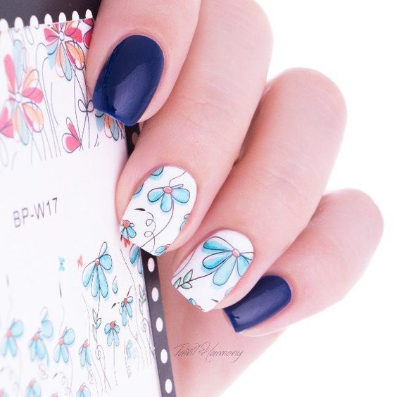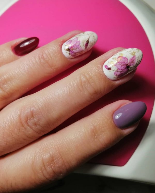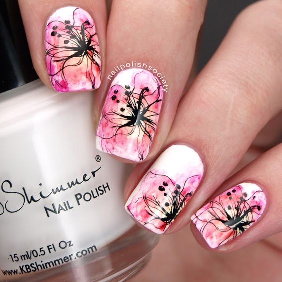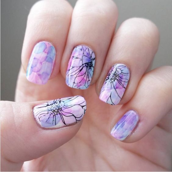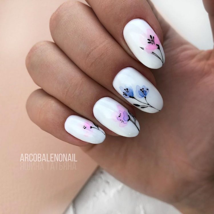 І найпопулярніший варіант, який використовується в акварельній техніці манікюру – це квіткова тематика. За допомогою яскравих та красивих фарб або кольорового гель-лаку майстер малює неймовірно шикарні букети, окремі квіти та інші композиції, що вражають.
