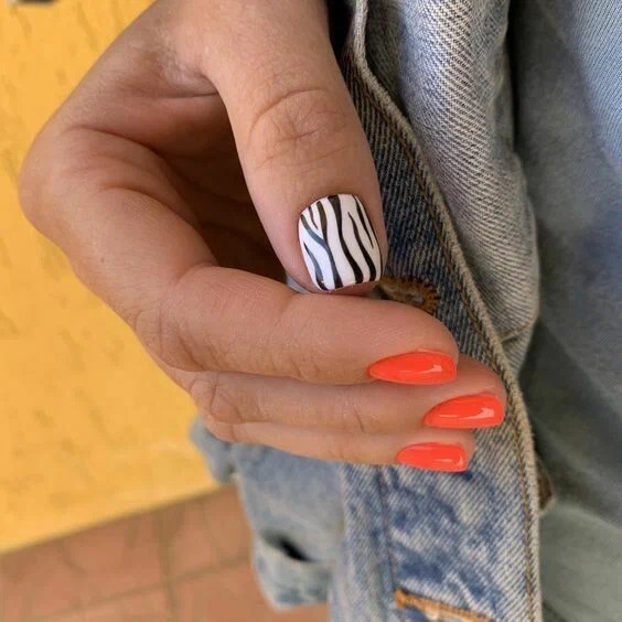 Можливості дизайну нігтів з анімалістичним принтом безмежні. Смужки зебри можуть виглядати екстравагантно. Цей дивовижний дизайн нігтів зі звіриним принтом є надзвичайно простим і виглядає досить красиво. В основу можна додавати і яскраві, і стримані кольори. Хорошим фоном стане пісочний і білий.