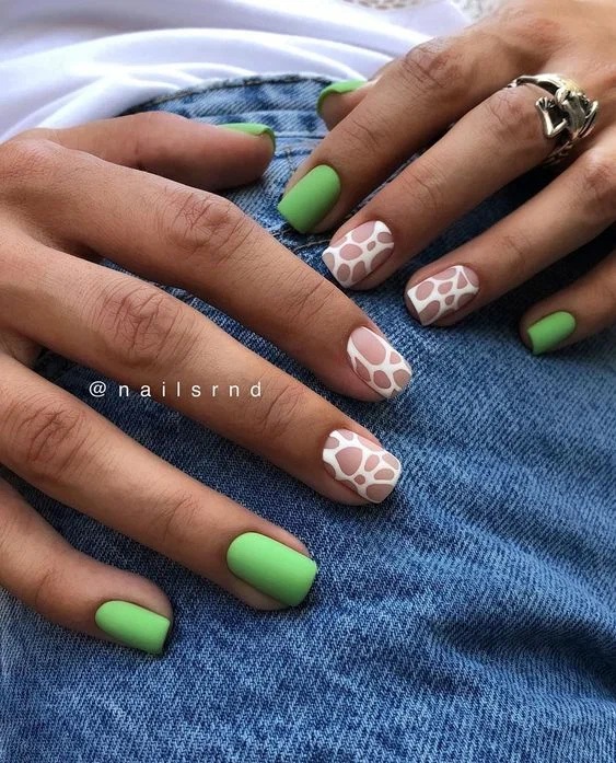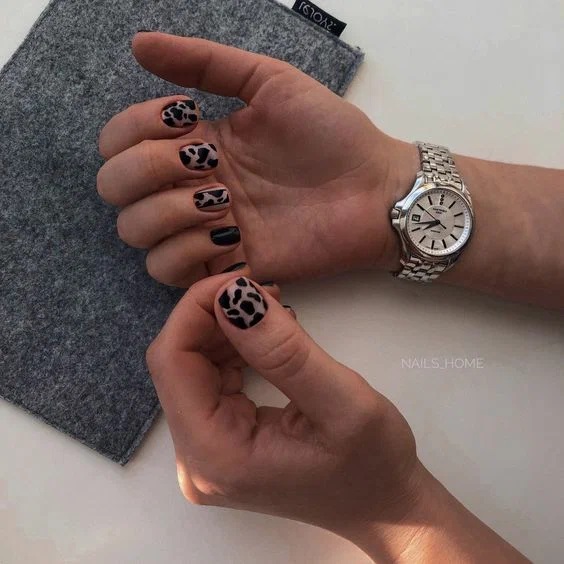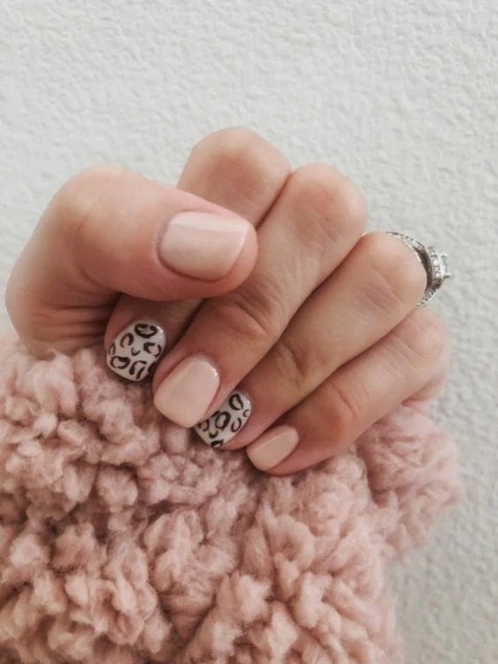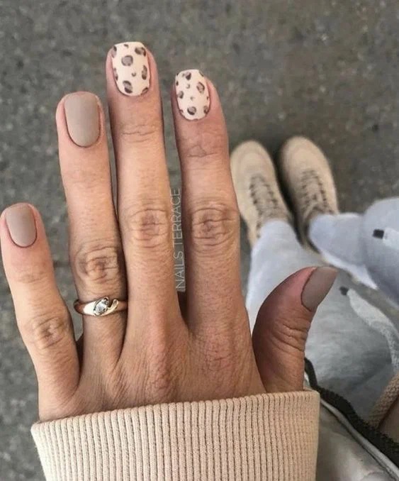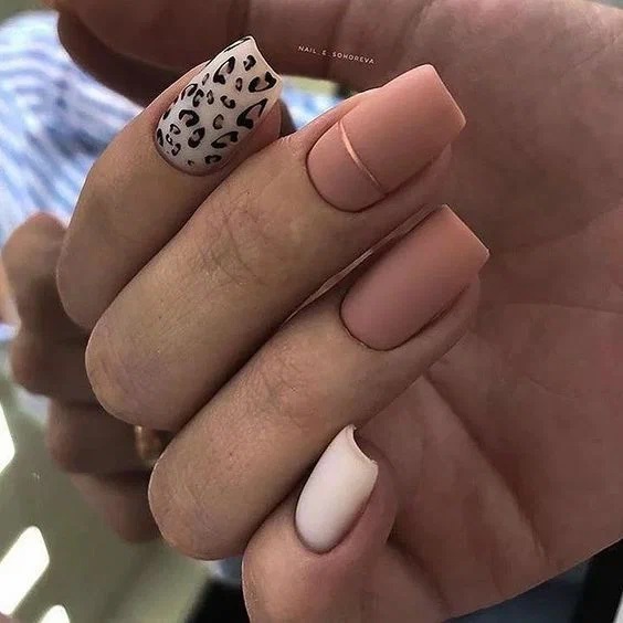 Красиво виглядають на нігті світліші відтінки і основні кольори, такі як нюдовий і світло-коричневий. Чергуйте дизайн нігтиків із суцільним покриттям та леопардовий візерунок для створення ніжного та привабливого манікюру.