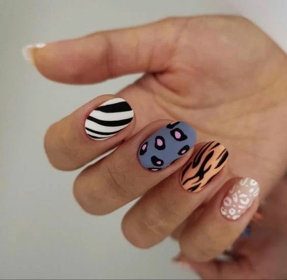 Для створення нейл-арту можна черпати натхнення із чого завгодно. Дуже популярний цього сезону звіриний принт – візерунок, що нагадує забарвлення тварин, птахів, рептилій. Для реалізації задуманого дизайну використовуються наклейки або 3D-стіки. Деякі майстри створюють візерунки пензлем на поверхні нігтя вручну.