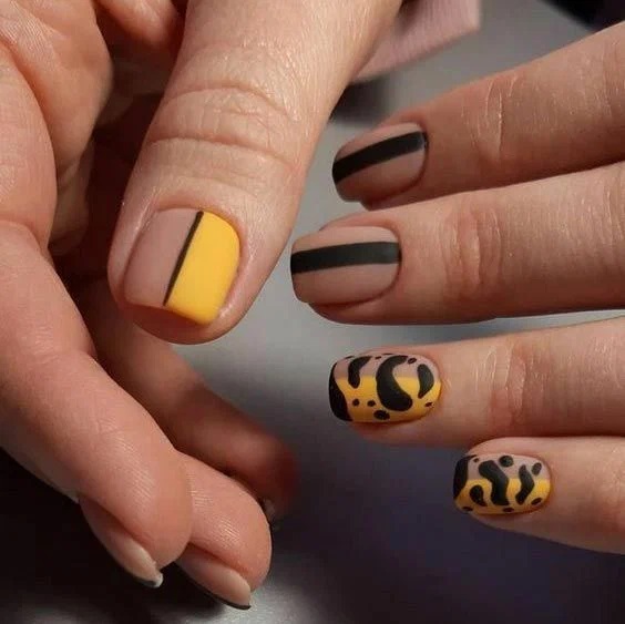 Дизайн дикого леопарда виглядає ніжно та елегантно. Більшість леопардових принтів виконані у чорних, коричневих та кавових тонах, що робить їх досить темними. Розбавити дизайн можна жовто-жовтогарячим кольором або контрастними лаками.