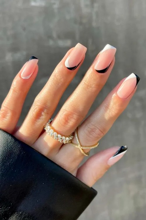 Чорно-білий френч на квадратних нігтях