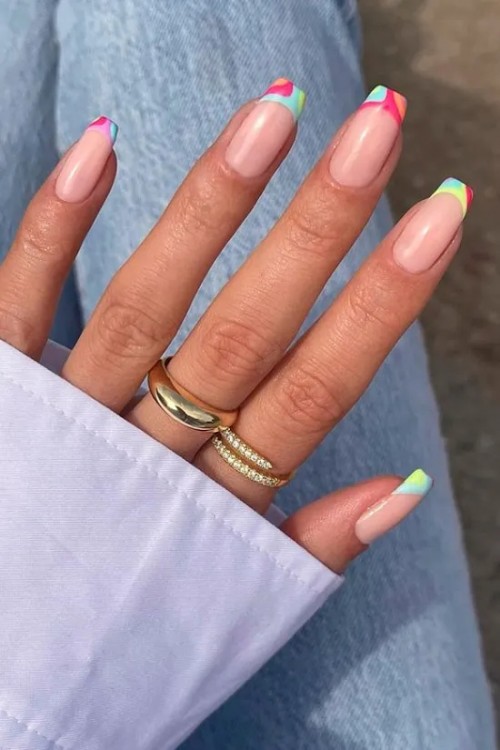 Яскравий різнокольоровий френч на довгих квадратних нігтях