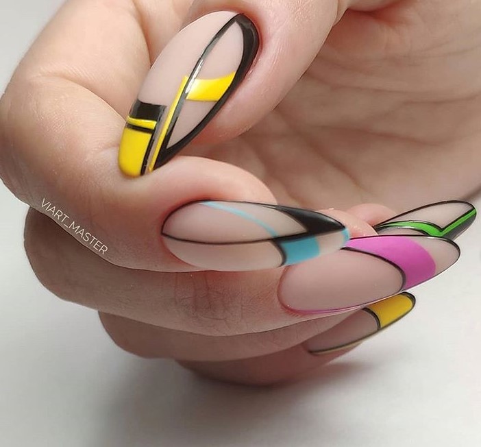 У цьому варіанті використовуються різні кольори лаку, дизайн виконується залежно від фантазії майстра. Комбінації відтінків можуть бути всілякими як для основного тону, так і для кромки нігтя. У такому манікюрі жінка може відобразити власний стиль, свою індивідуальність.