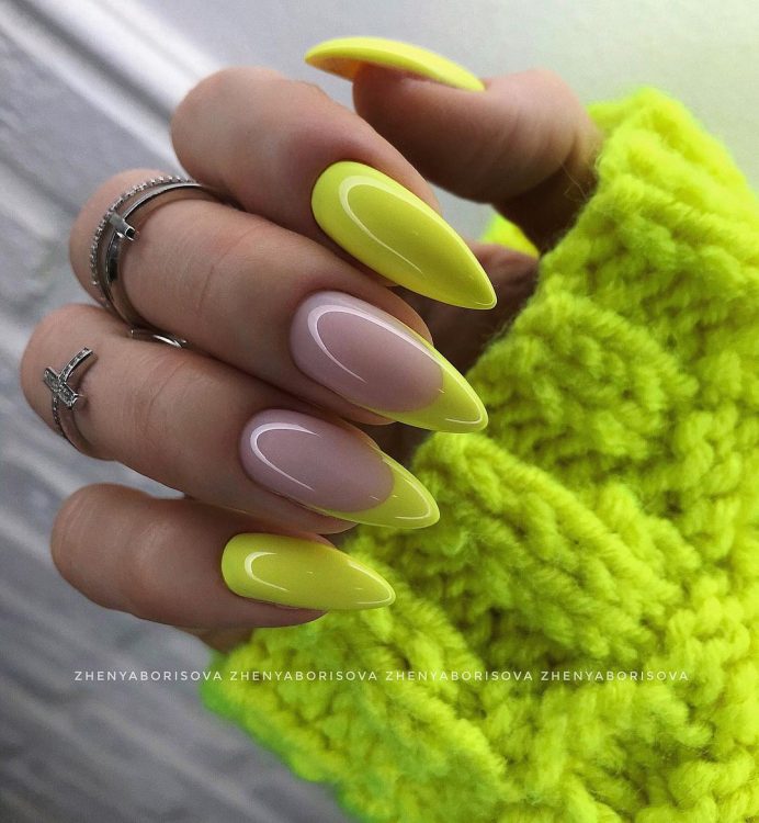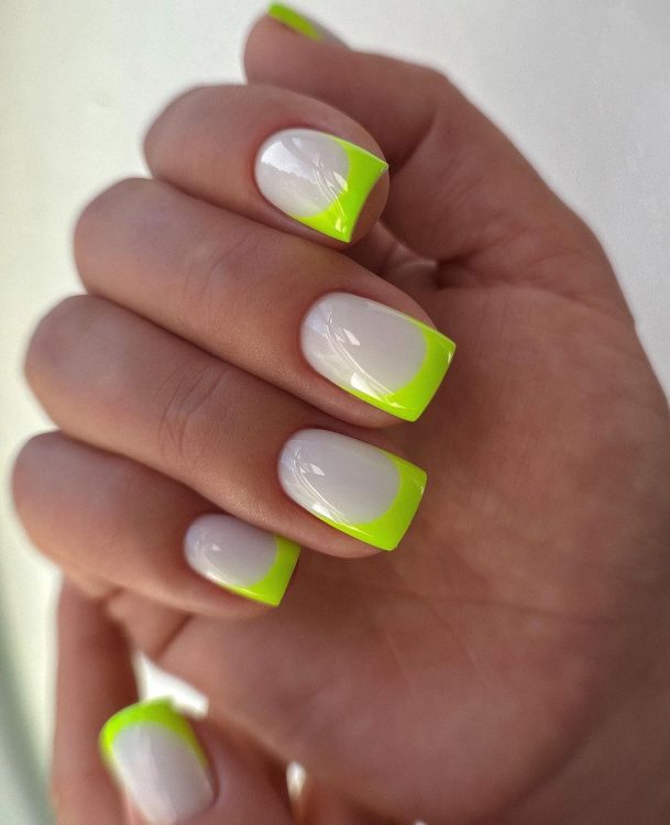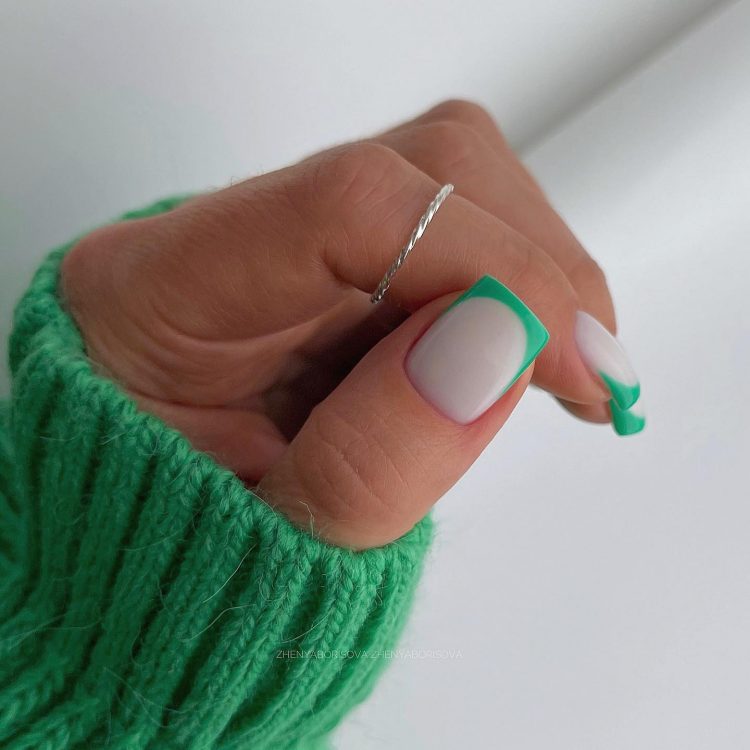Такий вид французького манікюру має лише одну відмінну від класичного френча особливість. У цьому випадку кінчик нігтя прикрашається кольоровим лаком. Різноманітність варіантів неможливо перелічити, ви можете використовувати будь-який кольоровий лак, який є під рукою або підходить під ваш сьогоднішній образ. Основа залишається пастельних тонів.
