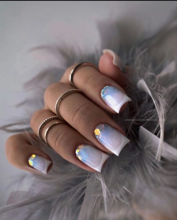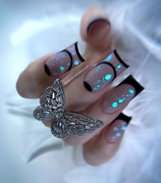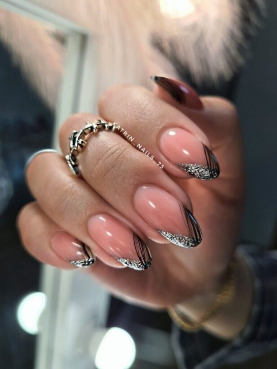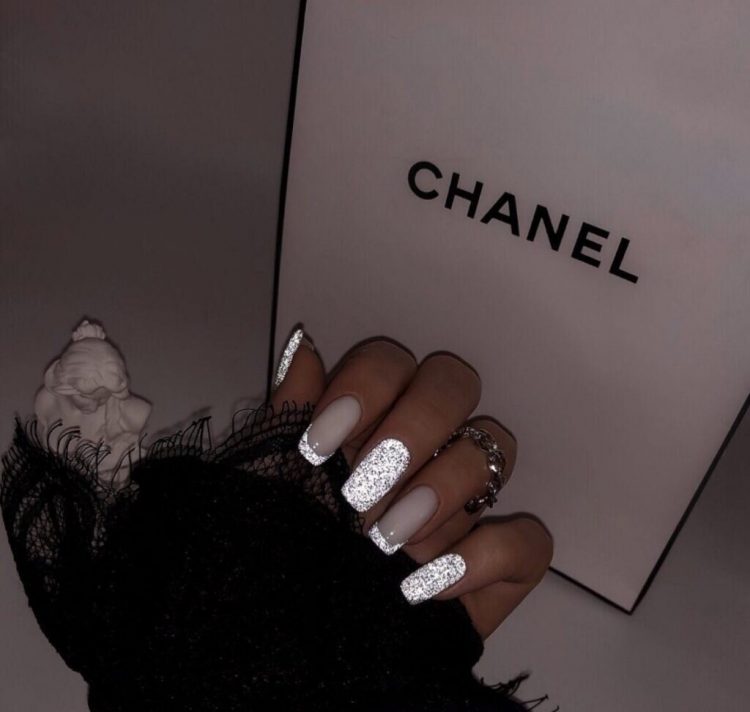 Взимку найчастіше модниці вибирають френч із додаванням блиску, що робить дизайн нігтів більш святковим та, водночас, загадковим.