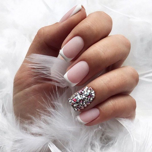 У класичному виконанні подібний манікюр буде доповнюватися сріблястою або золотистою окантовкою, блискучими намистинами, мерехтливими стразами, а також усілякими камінчиками, що відрізняються за розміром, формою та забарвленням.