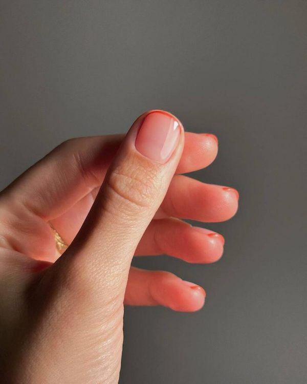 Манікюр у корейському стилі користується популярністю, і це не тільки екстравагантні нейл-дизайни з об’ємними 3D-фігурами, але й стриманіші, часом навіть мінімалістичні варіанти. Френч у такій естетиці виглядає ефектно та незвично. Покрийте нігтьову пластину лаком, який створить ефект желе на нігтях, а потім намалюйте звичну “усмішку”.