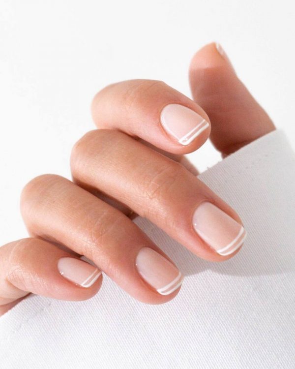 Ще один стильний варіант французького манікюру – подвійний френч. Назва дизайну говорить сама за себе – звична лінія на кінчиках нігтів дублюється. Але, якщо ви віддаєте перевагу більш оригінальним б’юті-рішенням, перемістіть другу смужку на лунку нігтьової пластини.