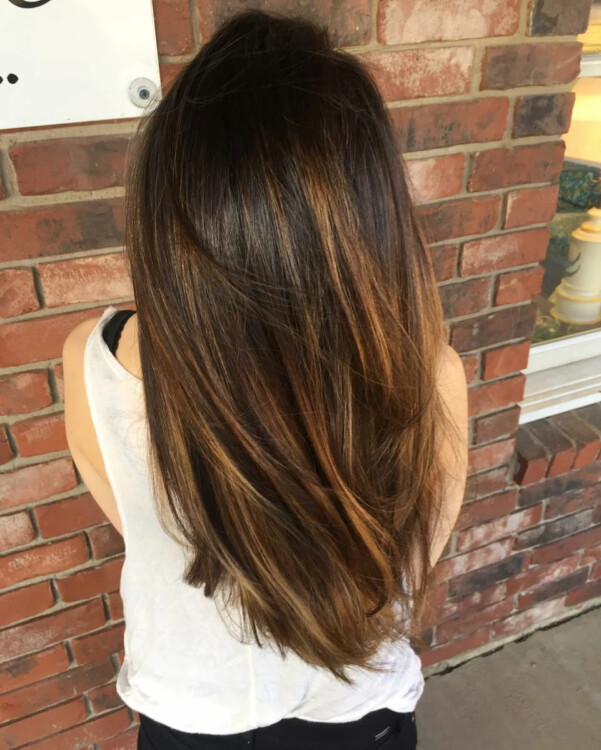 Таке фарбування передбачає наявність теплих золотистих тонів спільно з бронзовими переливами на коричневому кольорі. Такий шляхетний і насичений відтінок дозволить підкреслити природну красу модниці. Особливо актуальний цей відтінок для шатенок.