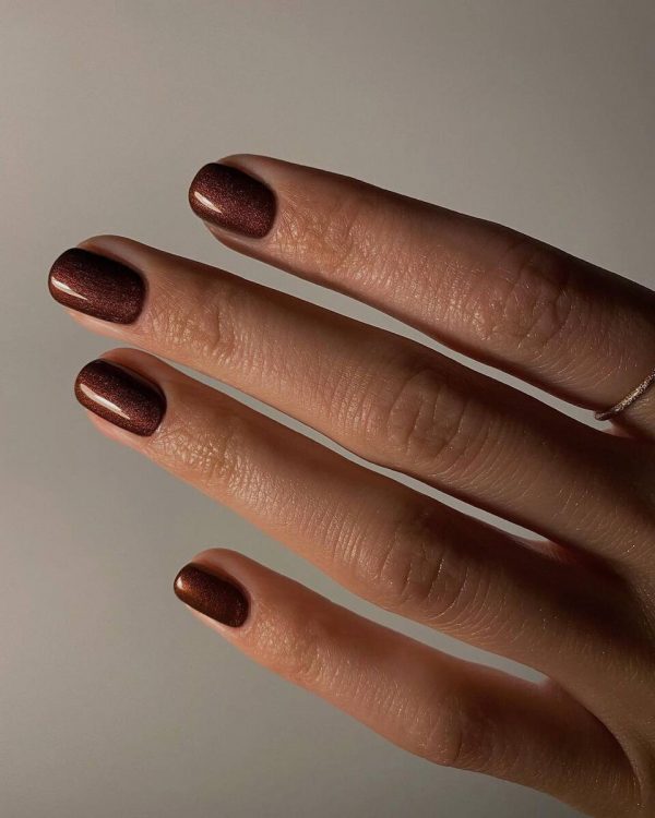 Якщо ви шанувальниця “дорогого” манікюру, то однотонне покриття у відтінку еспресо створене спеціально для вас. Один з головних плюсів такого нейл-рішення – воно виглядає однаково стильно на нігтях будь-якої довжини та форми.