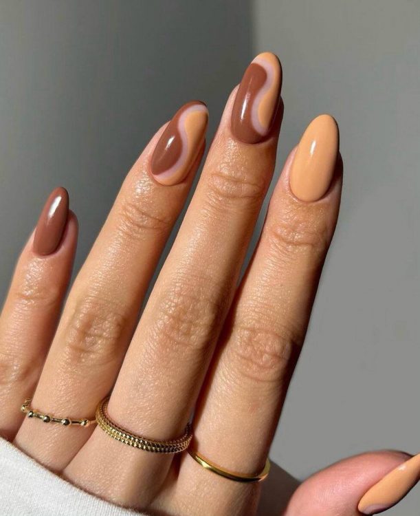 Як урізноманітнити однотонне покриття? Зробити манікюр у кількох відтінках. Використовуйте кольори ваших улюблених кавових напоїв та нанесіть їх по одному на кожен ніготь.