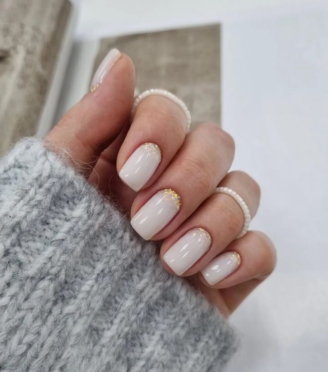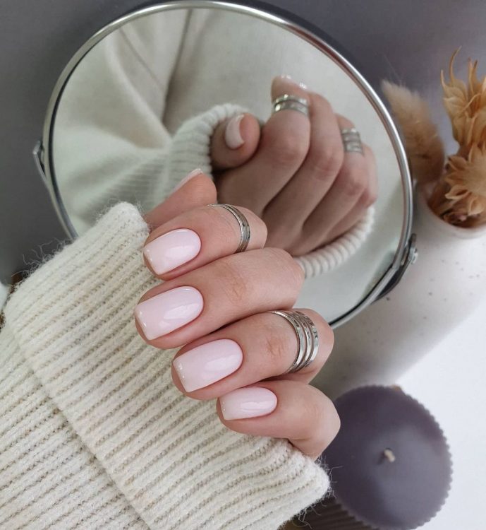 Шанувальники вишуканої витонченості віддають перевагу ніжному манікюру в нюдових тонах. Ці жіночні відтінки на нігтиках можна використовувати в різних варіаціях. Імітація природного кольору нігтьових пластин цього року неймовірно популярна. Ефектно та романтично виглядає манікюр, що поєднує в собі рожевий колір нижнього шару та персиковий верхнього. Святково виглядає такий дизайн, декорований блискітками та одиничними стразами.