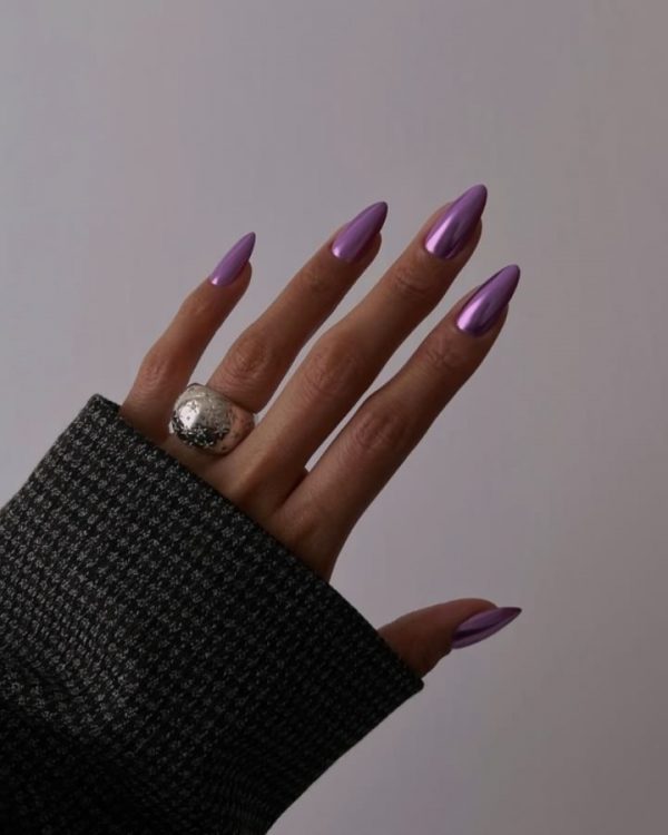 Манікюр лавандового відтінку – один із вічних символів літа, але цього разу модниці віддаватимуть перевагу хромованому варіанту, який добре поєднується із засмаглою шкірою.