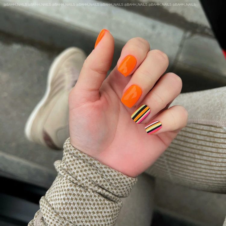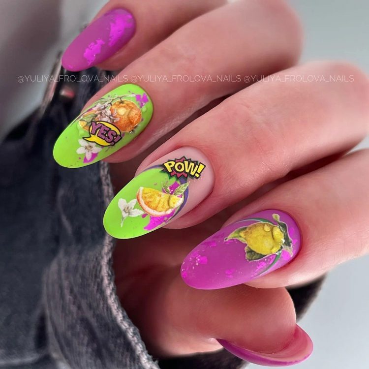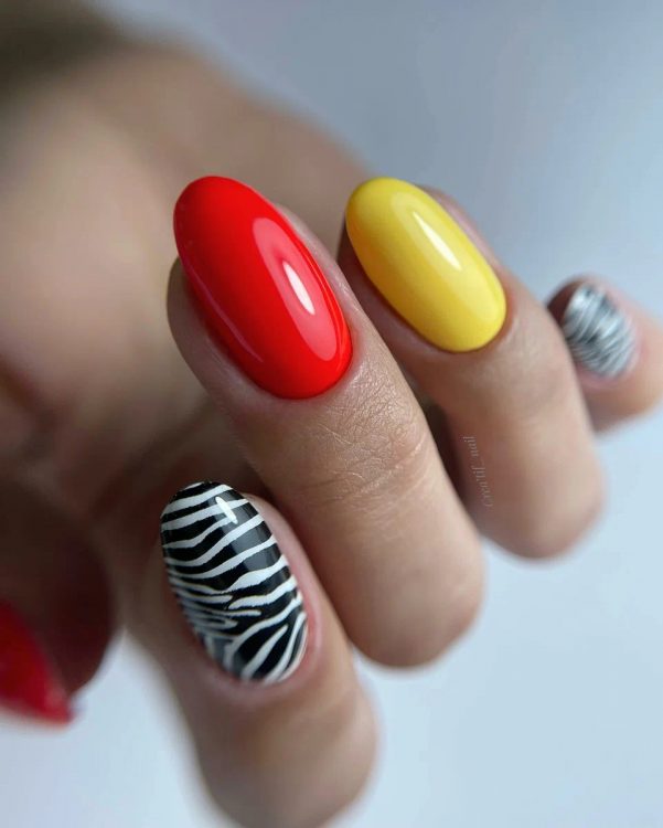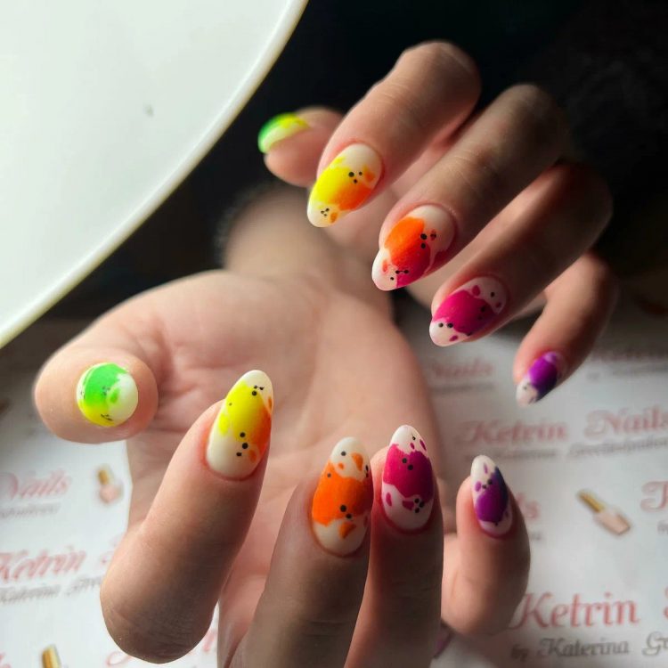 Якому манікюру найкраще віддати перевагу – жовтому, зеленому, помаранчевому? А якщо додати кожного кольору потроху і урізноманітнити їх іншими яскравими відтінками? Виглядає дуже навіть по-літньому.