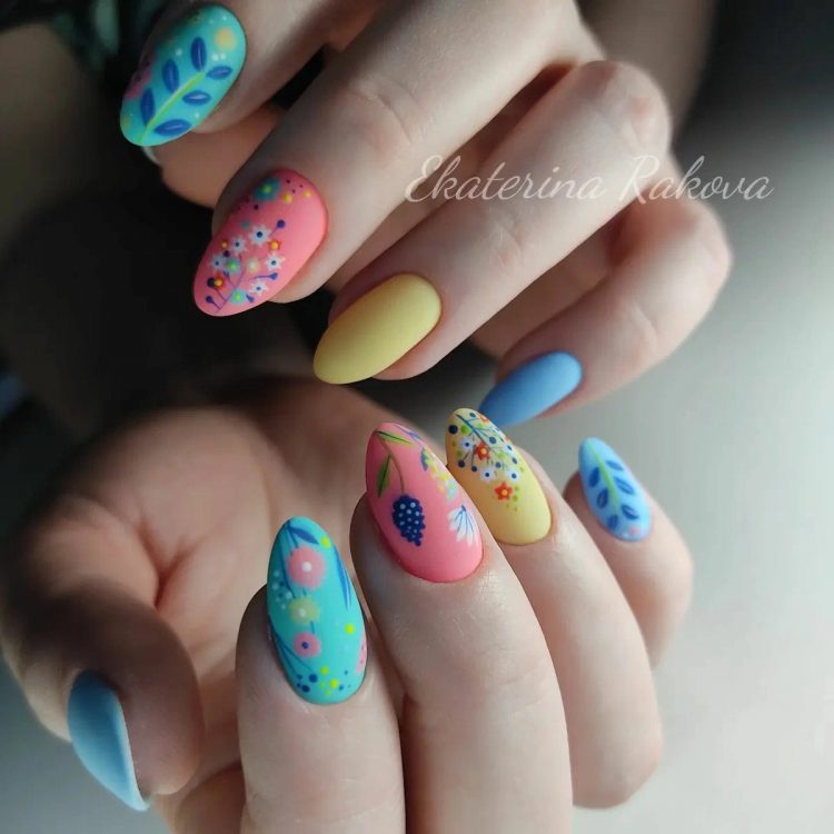 Звичайно ж, навесні та влітку не обійтися без флористичних візерунків на нігтях, що стали всесезонною класикою. У літній сезон квіти можуть бути як яскраві, помітні, так і дрібні, мінімалістичні.