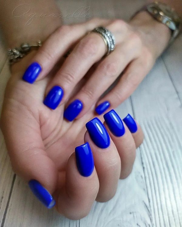 Якщо сучасні дизайни швидше дратують вас, варто зробити однотонне, але яскраве покриття. Дуже красиво виглядають насичені сині відтінки, викликаючи тугу по синьому морю.